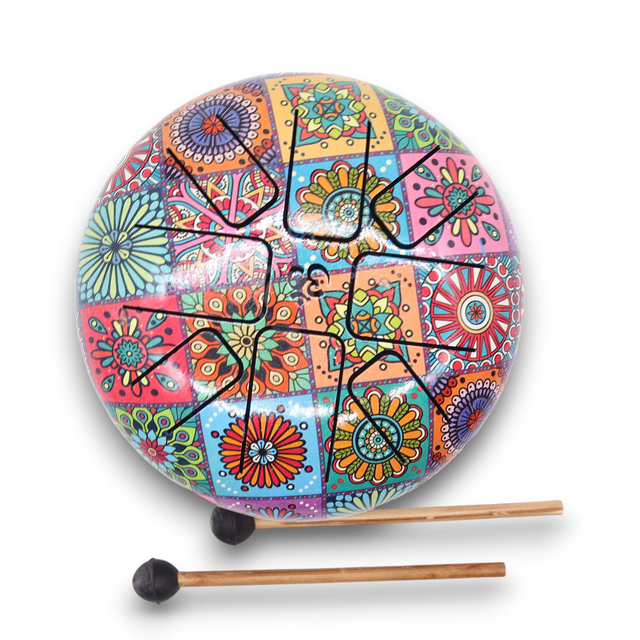 This versatile instrument produces soothing tones that promote relaxation and stress relief. Hand-played, it allows for a unique and personal experience with its ethereal sounds. Crafted from high-quality steel, this instrument is durable and built to last. Ideal for sound therapists, meditation practitioners, or music enthusiasts seeking a calming and meditative tool. Immerse yourself in the healing power of music with our steel tongue percussion instrument.